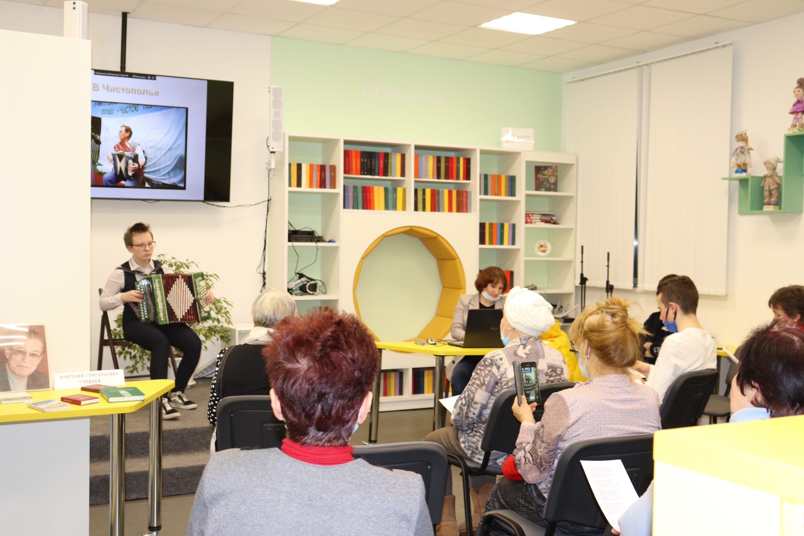 Анатолий Григорьевич – врач – стоматолог, врач – психиатр, заядлый гармонист, заслуженный деятель культуры РФ, член Союза писателей России. В течение вечера участники знакомились с биографией, творчеством, характером поэта, читали его стихи, обсуждали прочитанное. Не обошлось и без песен под гармошку, на которой бойко сыграла Елизавета Поздеева, учащаяся музыкальной школы.