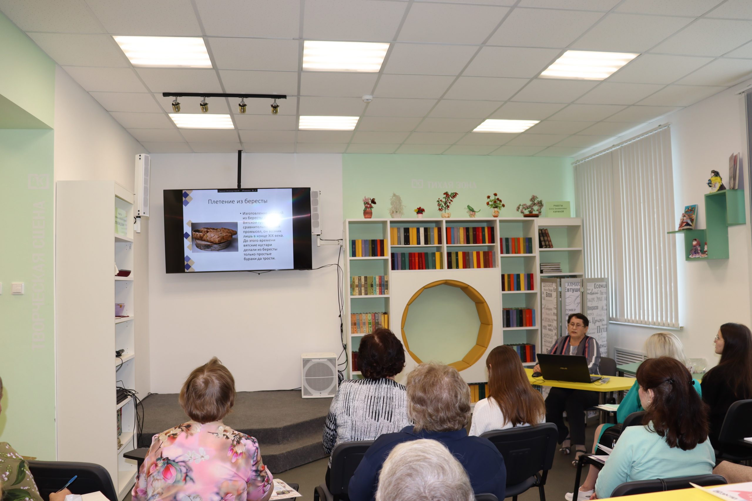 Также участники познакомились с новыми формами краеведческой работы: библио-такси, играми «VIP-гид» и «Бук – слэм» и др. Опытом поисково-исследовательской деятельности поделилась наша коллега, Ольга Сергеевна Рожнева, библиотекарь сектора краеведения Белохолуницкой ЦБ. О том, как создать краеведческий экскурсионный кейс, рассказала Н.В. Филиппова, методист МБО Кирсинской ЦБ им. Г.М. Вяземского. Практическая часть семинара включала проведение открытых мероприятий в рамках проектной деятельности модельных библиотек Верхнекамского муниципального округа.