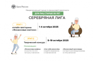 Банк России приглашает граждан старше 55 лет принять участие в турнире по финансовой грамотности. Как проходит турнир? 1 этап: «Финансовые...
