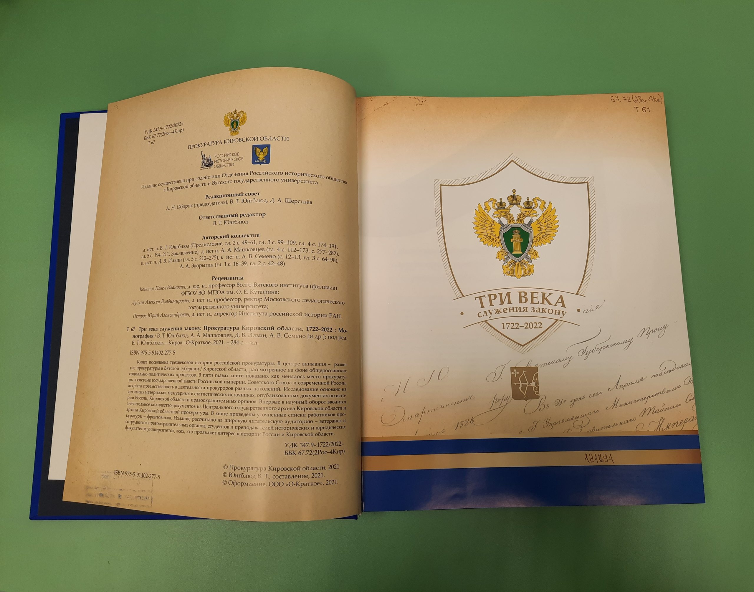 «Три века служения закону. Прокуратура Кировской области, 1722-2022».