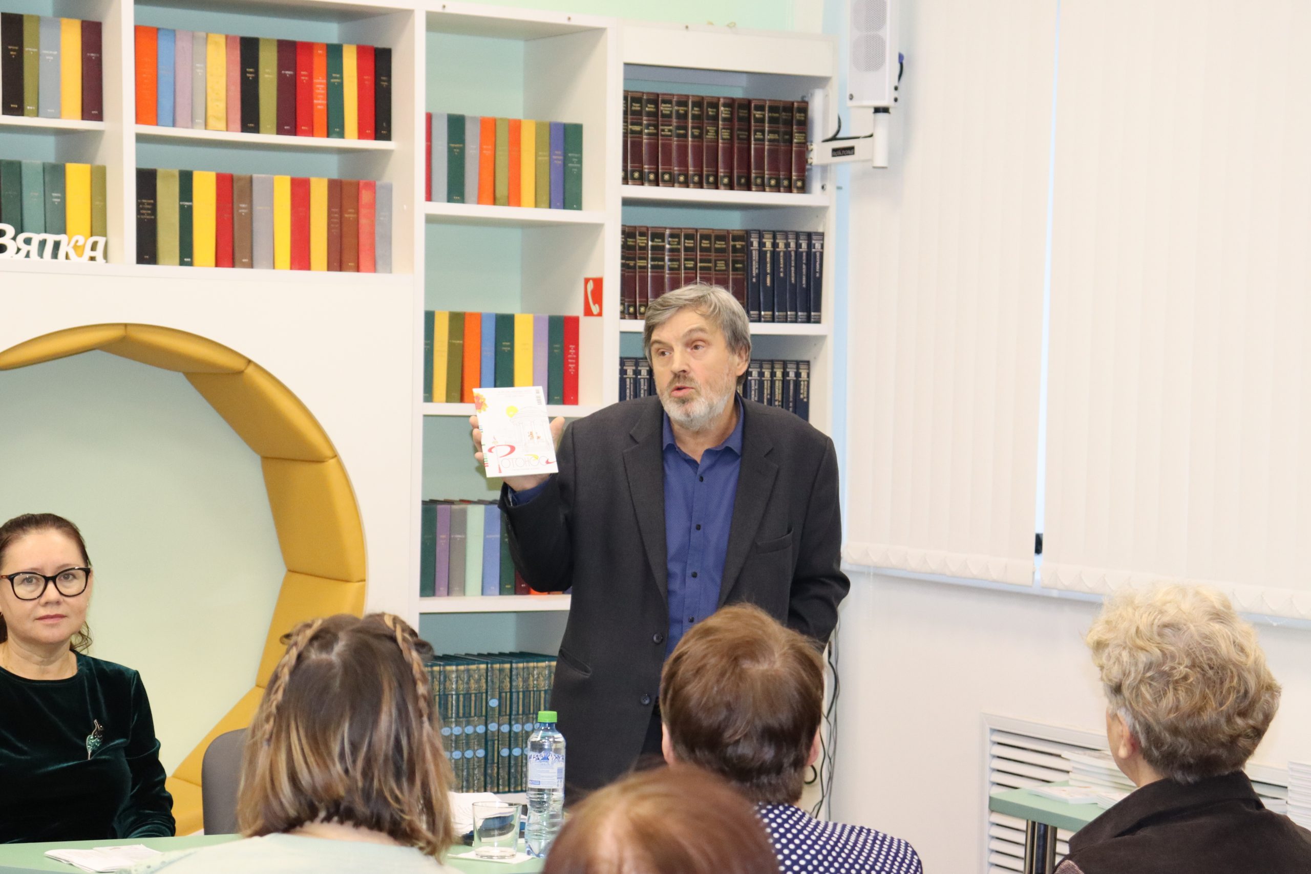 Десятого ноября Кирсинская центральна библиотека им. Г.М. Вяземского принимала у себя дорогих гостей — кировских поэтов, авторов прозы Николая Васильевича Пересторонина и Елену Семёновну Коновалову.