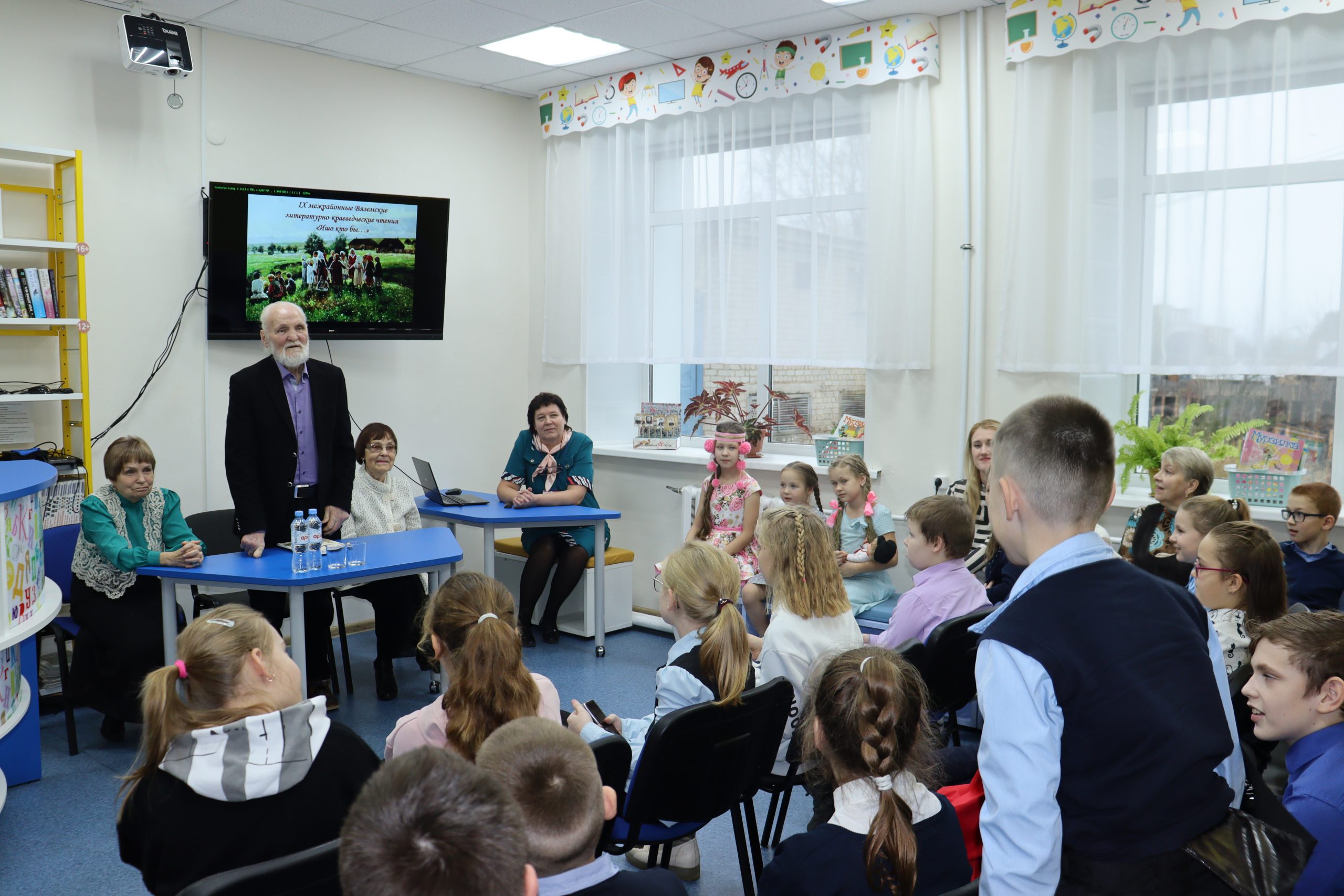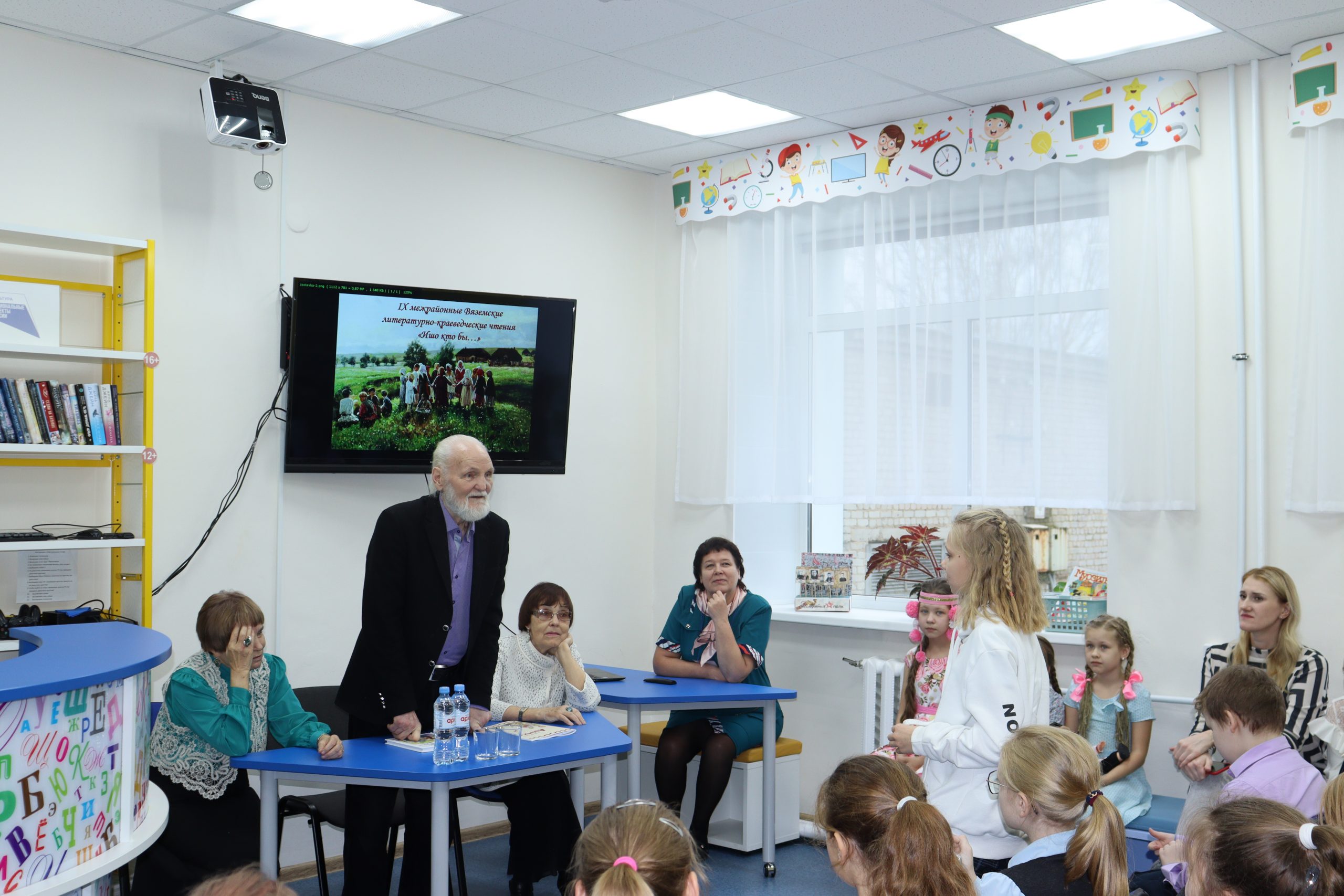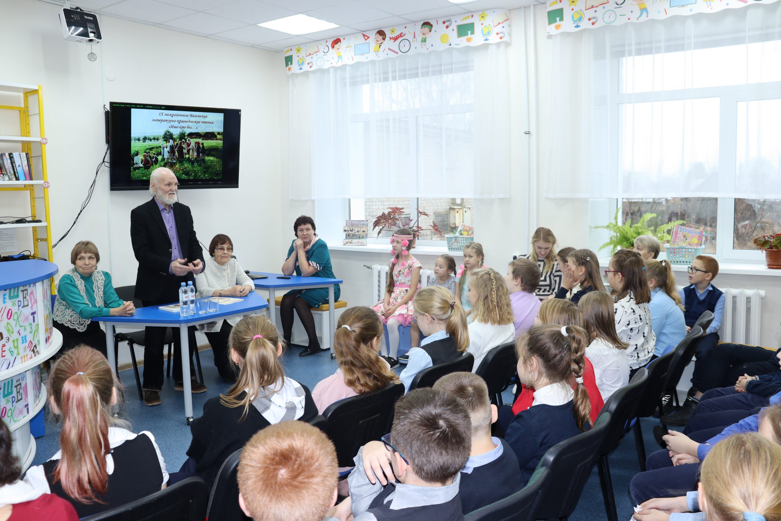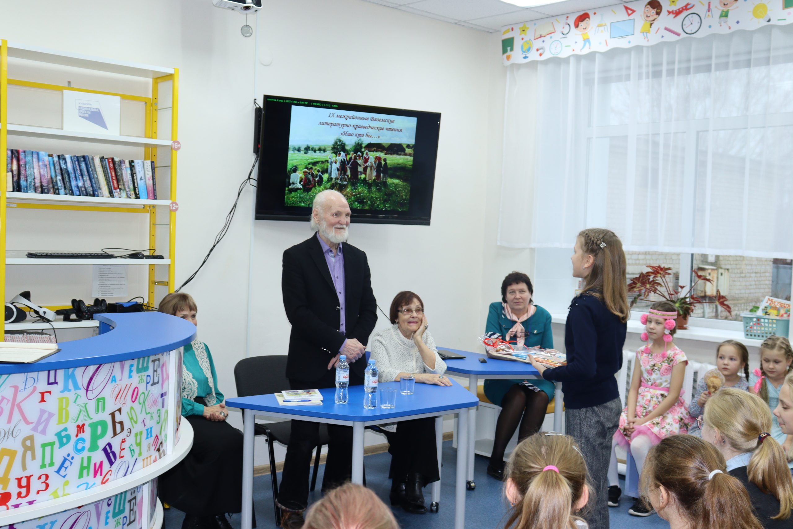 Визит Владимира Николаевича Крупина начался с посещения храма Покрова Пресвятой Богородицы. После этого Владимир Николаевич, Надежда Леонидовна и Наталья Ильинична встретились с детьми. В Кирсинской детской библиотеке-филиале собрались учащиеся 4 класса, победители и призёры межрайонного конкурса творческих работ, прошедшего в рамках чтений. Песней «Маков цвет» открыла встречу Милана Долинина. Владимир Николаевич рассказал о своём детстве, а затем ответил на вопросы детей. О художественном слове, русских народных сказках беседовала с ребятами Наталья Ильинична. Анна Щемелёва и Елизавета Двинских исполнили потешки, колыбельные, пестушки. Украсила встречу гостья из села Кай. Дина Владимировна Золотова, заведующий Кайским сельским домом культуры, рассказала легенду Кайского края, используя особенности местного говора. Ребята активно задавали вопросы и долго не хотели прощаться с Владимиром Николаевичем.