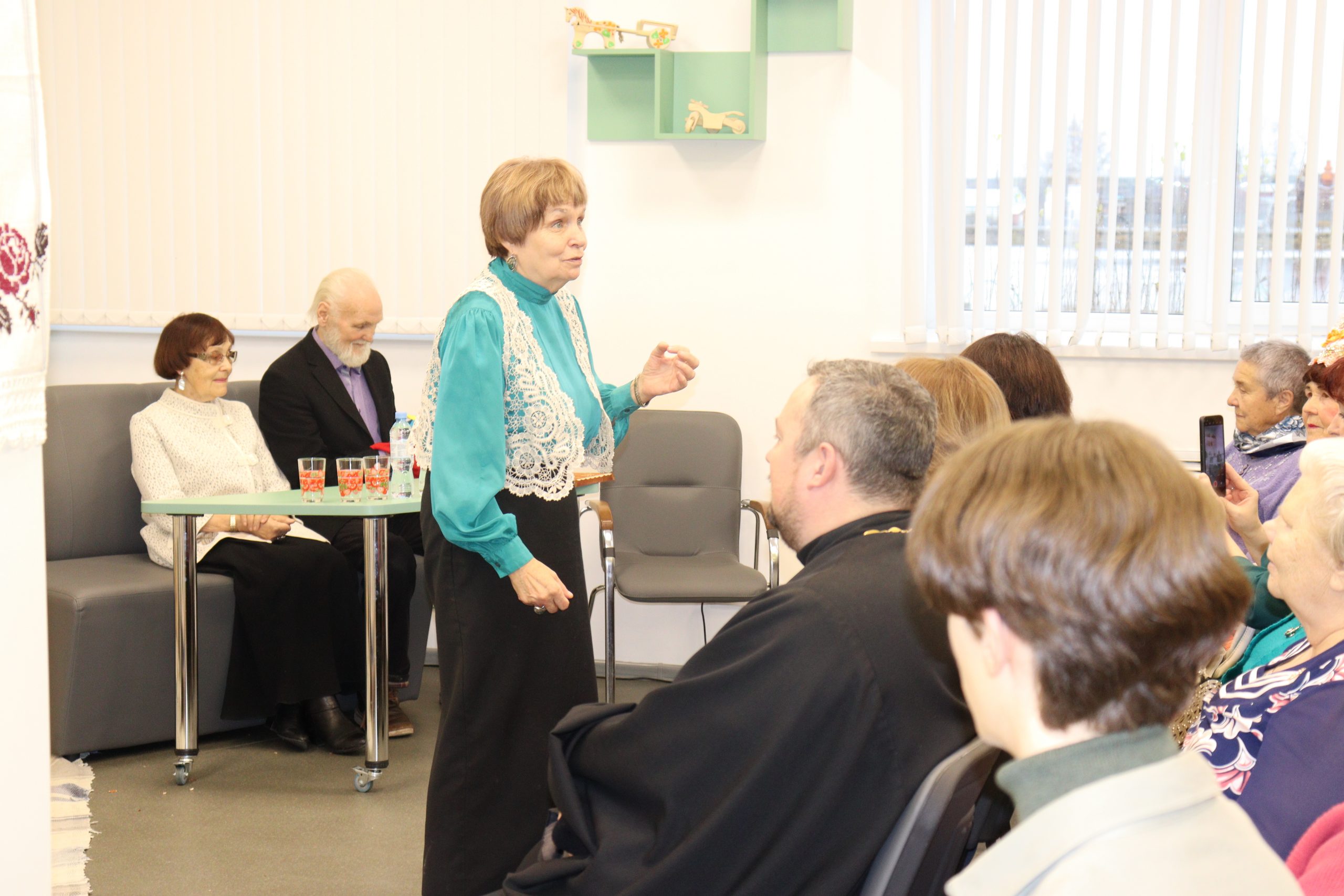 Но уже в нетерпении от предстоящей встречи взрослая аудитория. И опять позабавила присутствующих новой историей Дина Владимировна! Театральная студия «Сюжет» (руководитель Е.С. Ушакова), подготовила для дорогих гостей театрализацию «Ну, ишшо бы!», которая очень понравилась всем присутствующим. И, наконец, долгожданный разговор с писателем. Владимир Николаевич с удовольствием общался со слушателями чтений, отвечал на вопросы. Прочли свои стихи В.И. Пестов и В.Б. Мизева. Приятно удивила и порадовала гостей своим выступлением Юлия Ивановна Шулакова. Слушатели чтений побывали на видео-экскурсии по дому-музею православной культуры писателя в пгт. Кильмезь.
