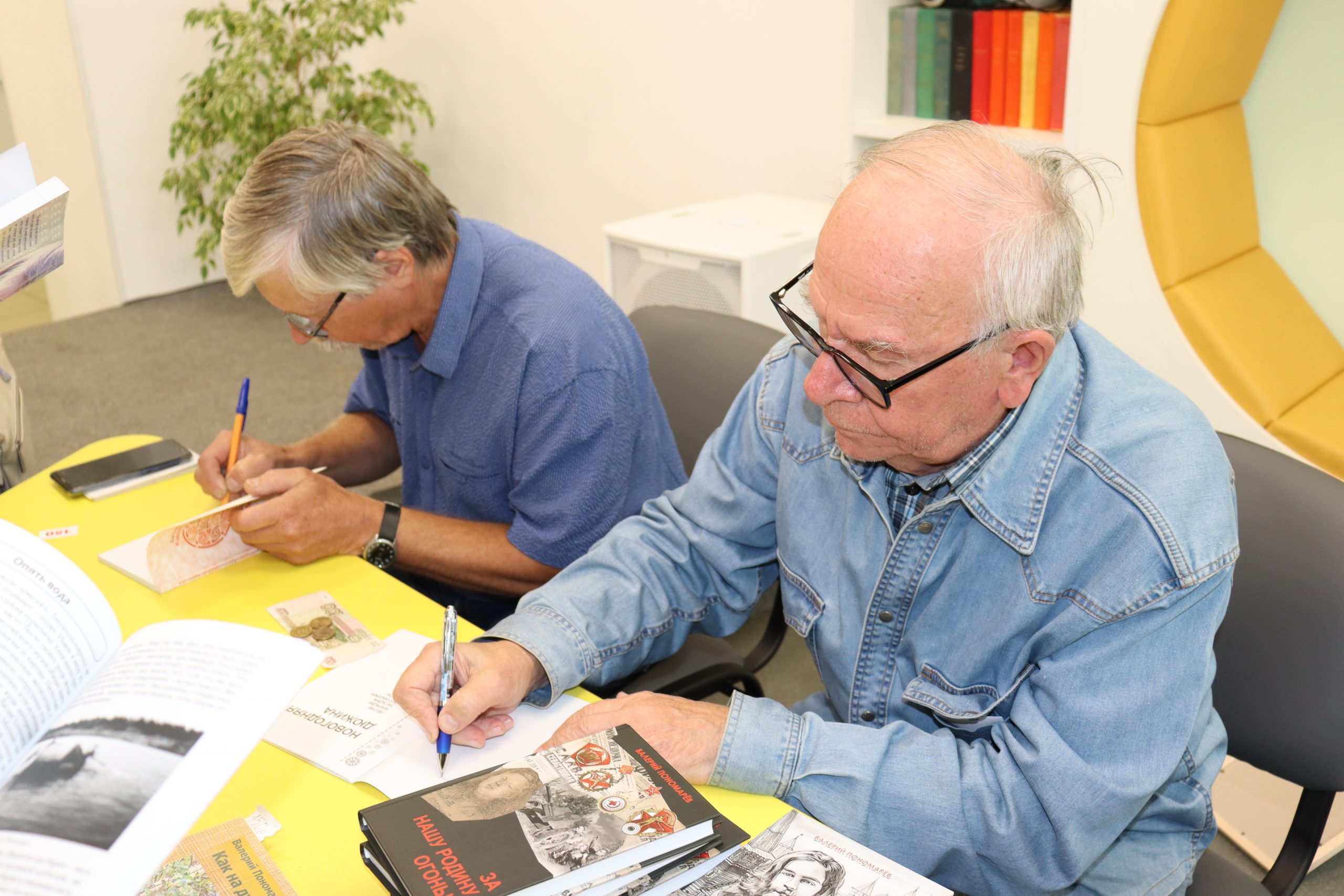 Валерий Фёдорович Пономарёв — настоящий артист! Столько эмоций! Новые книги писателя «За нашу Родину, огонь!..» и «Воевода Костя Юрьев» уже появились в библиотеке. Присутствующие вновь получили удовольствие, когда Валерий Фёдорович запел. Удивительные у нас сегодня были гости!