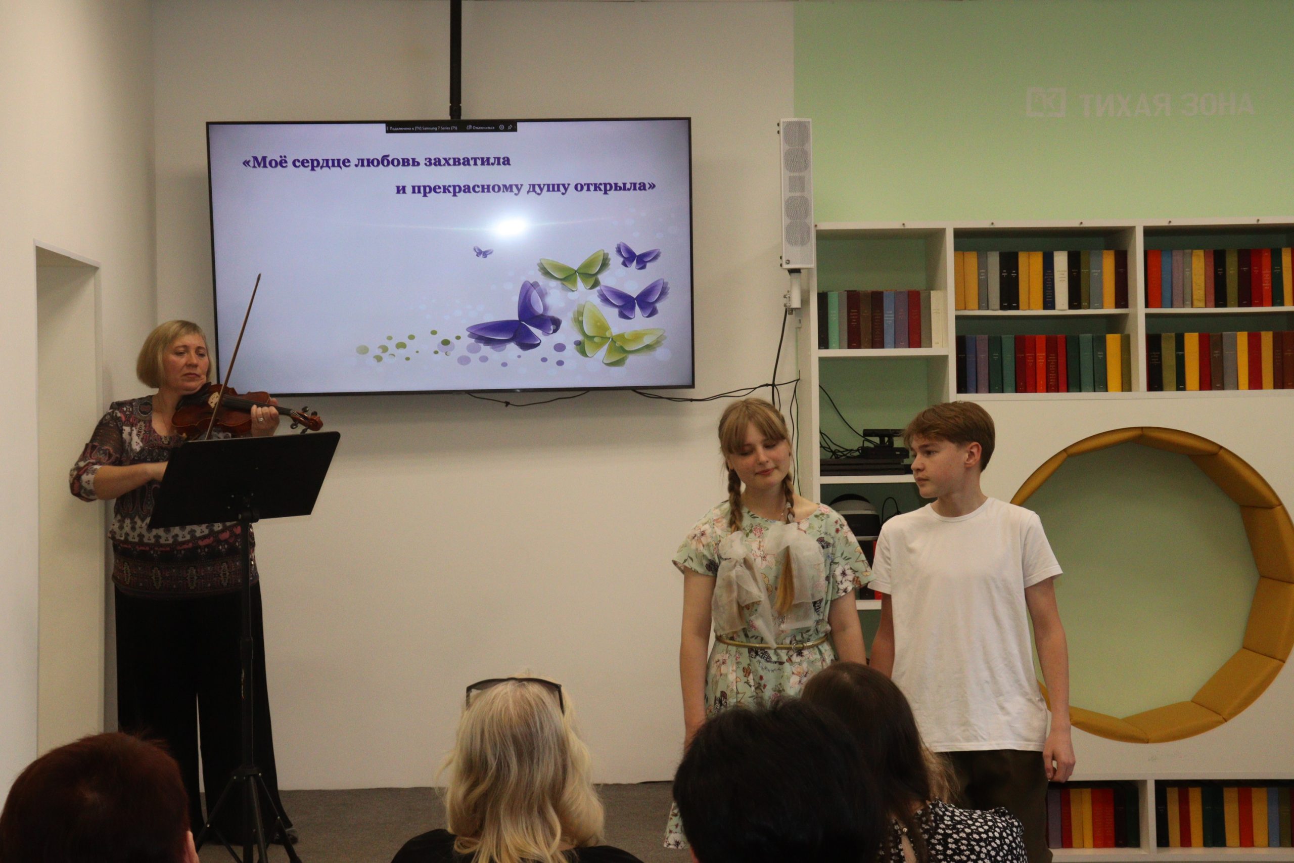 Так вышло, что человеческая жизнь строится на любви. Своя история любви сложилась и у Вячеслава Григорьевича. Любви к супруге посвящены стихи, представленные во второй части сборника «Моё сердце любовь захватила и прекрасному душу открыла». Актеры библиотечной театральной студии «Сюжет» Анастасия Махова и Алексей Огородов показали трогательную историю взаимоотношений.