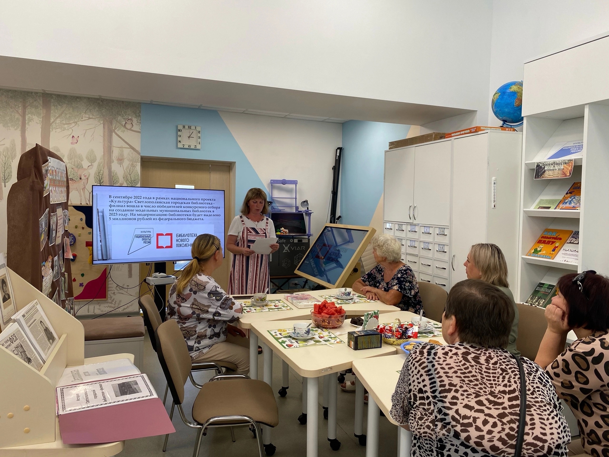 В Светлополянской ГБФ прошла встреча с ветеранами библиотечного дела. Презентация «История возникновения библиотеки» познакомила собравшихся с основными вехами ее развития. В адрес уважаемых коллег прозвучали слова благодарности и вручены буклеты с подарками. К мероприятию была подготовлена выставка «Есть храм у книг – библиотека» с материалами по истории библиотеки.