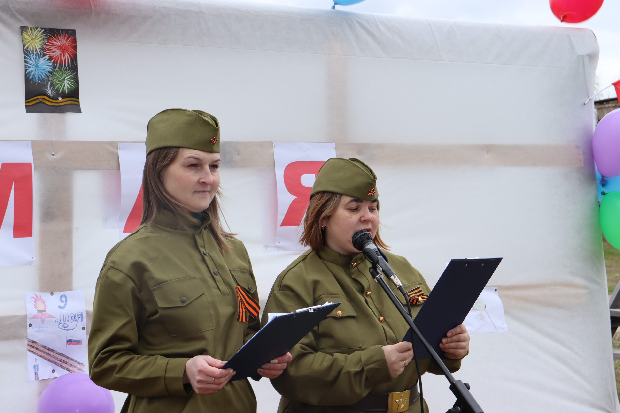 Торжественную часть праздника провели Екатерина Долгорукова и Светлана Анисимова. В ходе мероприятия прозвучали песни военных лет в исполнении Татьяны Мартюшовой и супругов Красногировых – Алексея Анатольевича и Валентины Салиховны. Танец «Кукушка» исполнил танцевальный дуэт девочек. Празднование продолжилось угощением солдатской кашей и чаепитием под песни военных лет, которое организовали супруги Валерия Викторовна и Виктор Дмитриевич Ершовы.
