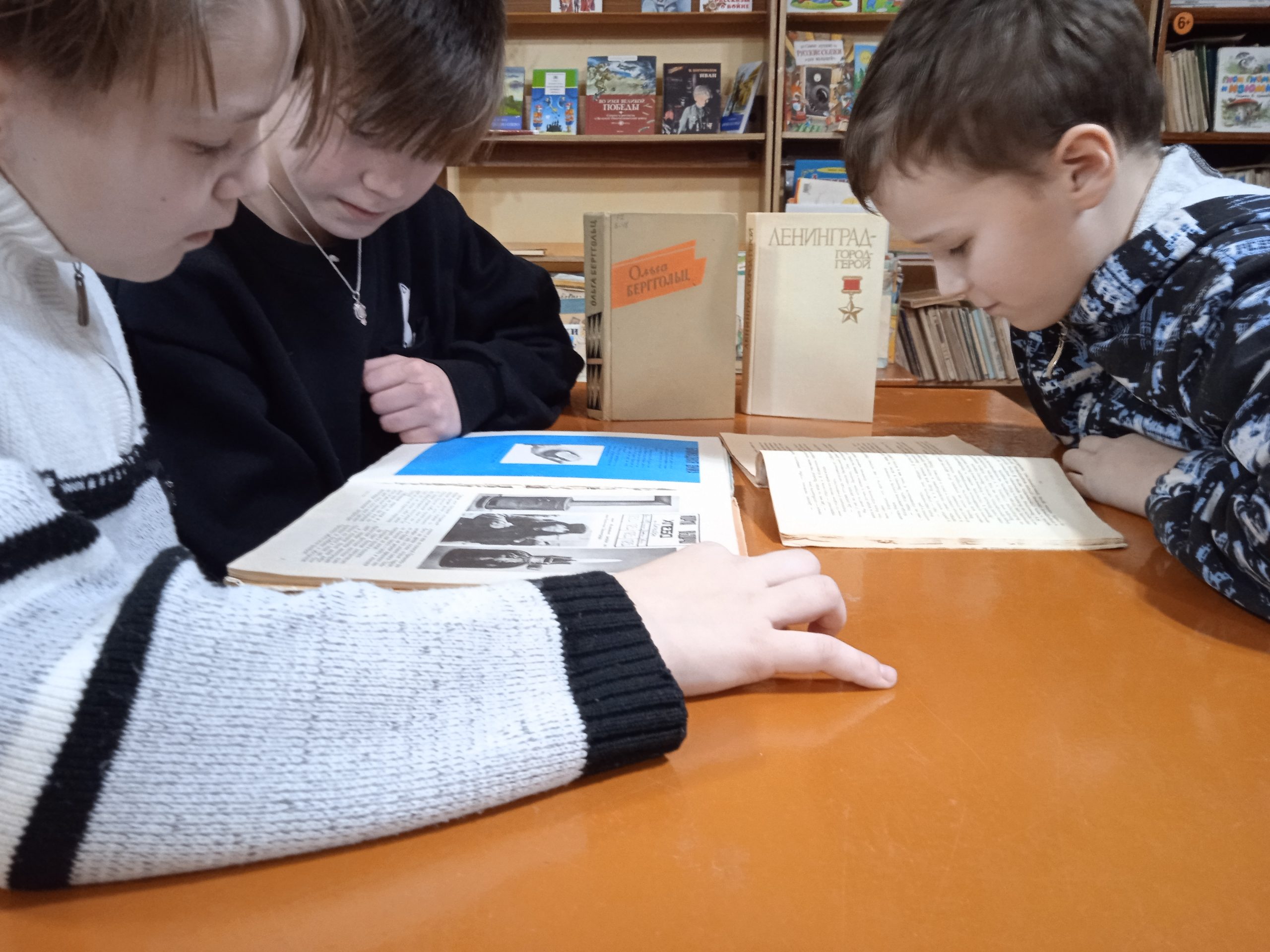 Погрузиться в атмосферу блокадного Ленинграда посетителям урока-памяти «Непокорённый Ленинград» в Кирсинской ГБФ №2 помогли кадры из документального фильма «Ленинград в борьбе» (1942). Кирсинская ЦБ им. Г.М. Вяземского провела для школьников час памяти «Я говорю с тобой из Ленинграда». Ребята познакомились с воспоминаниями людей о жизни в тот период, творчеством Ольги Берггольц и Владимира Крылова, военного корреспондента. Во время мероприятия состоялся показ видеоролика «Февральский дневник» и т.д. В Пушейской СБФ для женщин, оказывающих поддержку участникам СВО, провели час мужества «Выстоял. Сражался. Победил» и т.д.