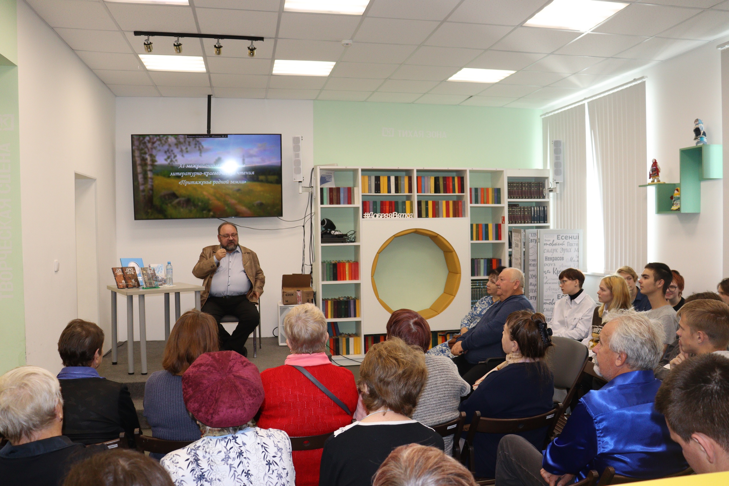 Владимир Сергеевич — разносторонняя личность, профессор, учёный, доктор экономических и философских наук, член Союза писателей России, общественный деятель, ректор Вятского социально-экономического института. Поразили его расширенный взгляд на мир, способность тонко чувствовать собеседника и рассматривать вопросы под разными углами. В разговоре с писателем ощущалась его высокообразованность в удивительном сочетании с прямотой суждений и замечательным чувством юмора. Каждая художественная книга автора необычна, захватывает воображение и увлекает. В них настолько гармоничны вымысел и реальность, что просто с головой окунаешься в содержание. В ходе встречи аудитория (молодежь и взрослые) получила ответы на все вопросы, заданные нашему гостю. Владимир Сергеевич не просто отвечал на вопрос, а, казалось бы, издалека, но профессионально подводил к пониманию сути. Замечательный собеседник!