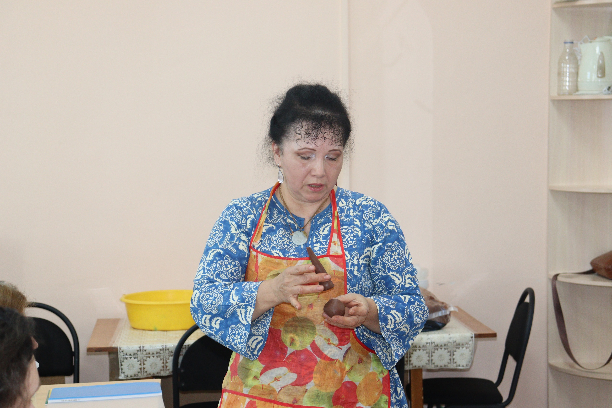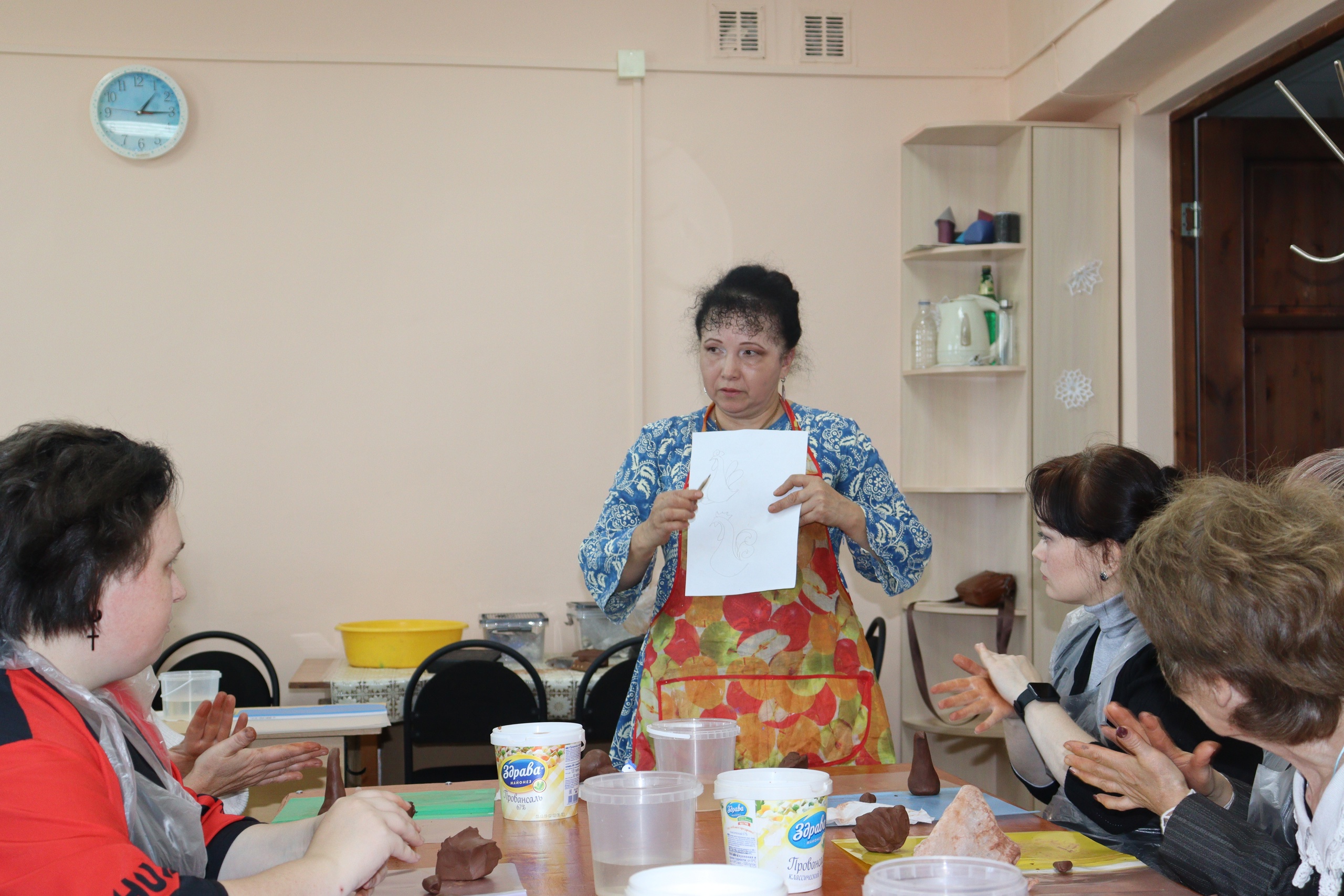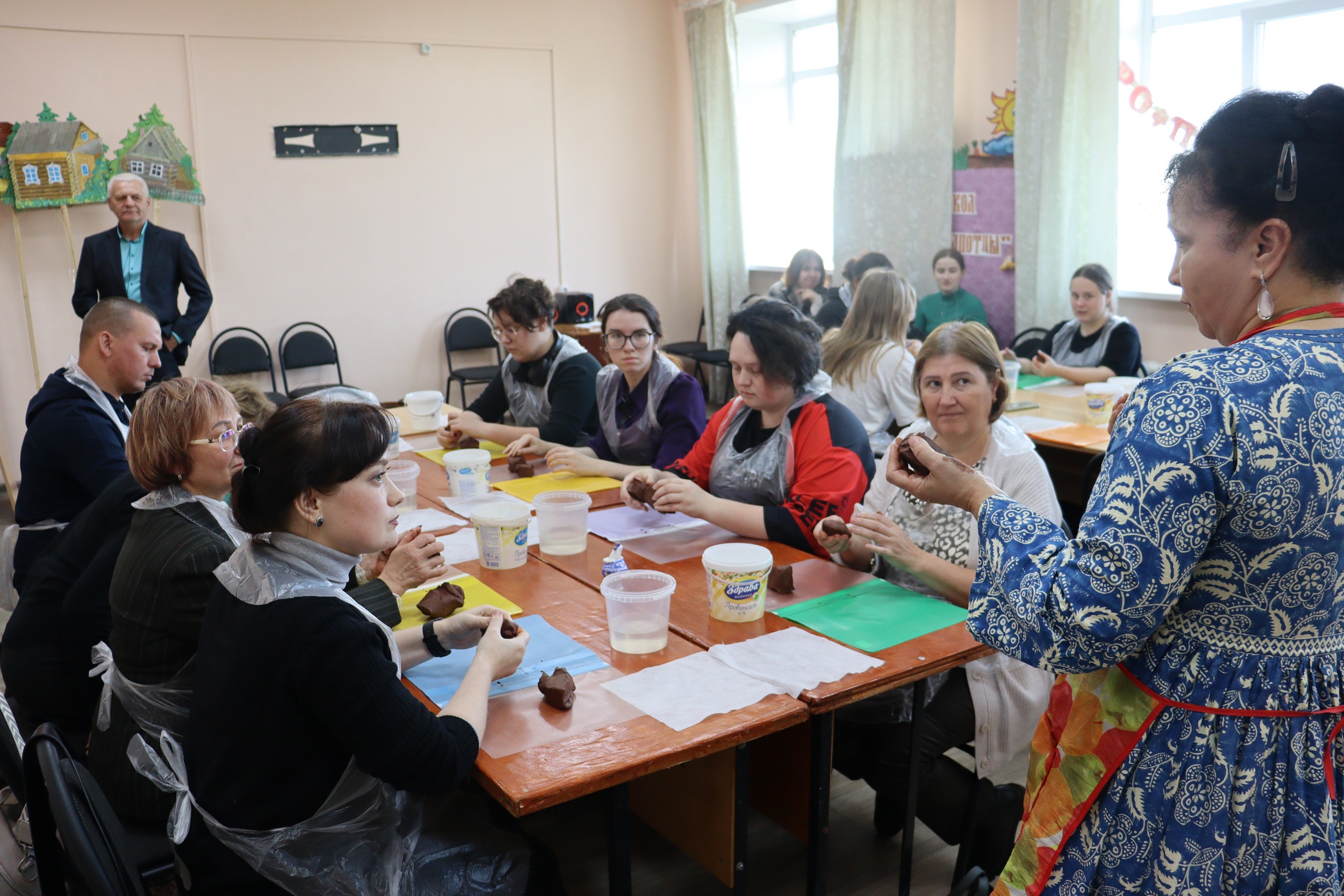 Об удивительном феномене – Дворянской игрушке рассказала Аниса Азатовна, ученица народного мастера Нины Михайловны Колчиной перед началом мастер-класса. Мастерица привезла свои необыкновенные работы, которыми долго восхищались участники мастер-класса. Они старательно выполняли все советы мастерицы, подбадривали друг друга, осваивая это сложное искусство. В ходе лепки игрушки «Петушок» (глину для изготовления изделий Аниса Азатовна привезла с собой) взрослые, молодежь и дети постигали азы и получили практические навыки. Добрый, светлый человек Аниса Азатовна очаровала всех нас!