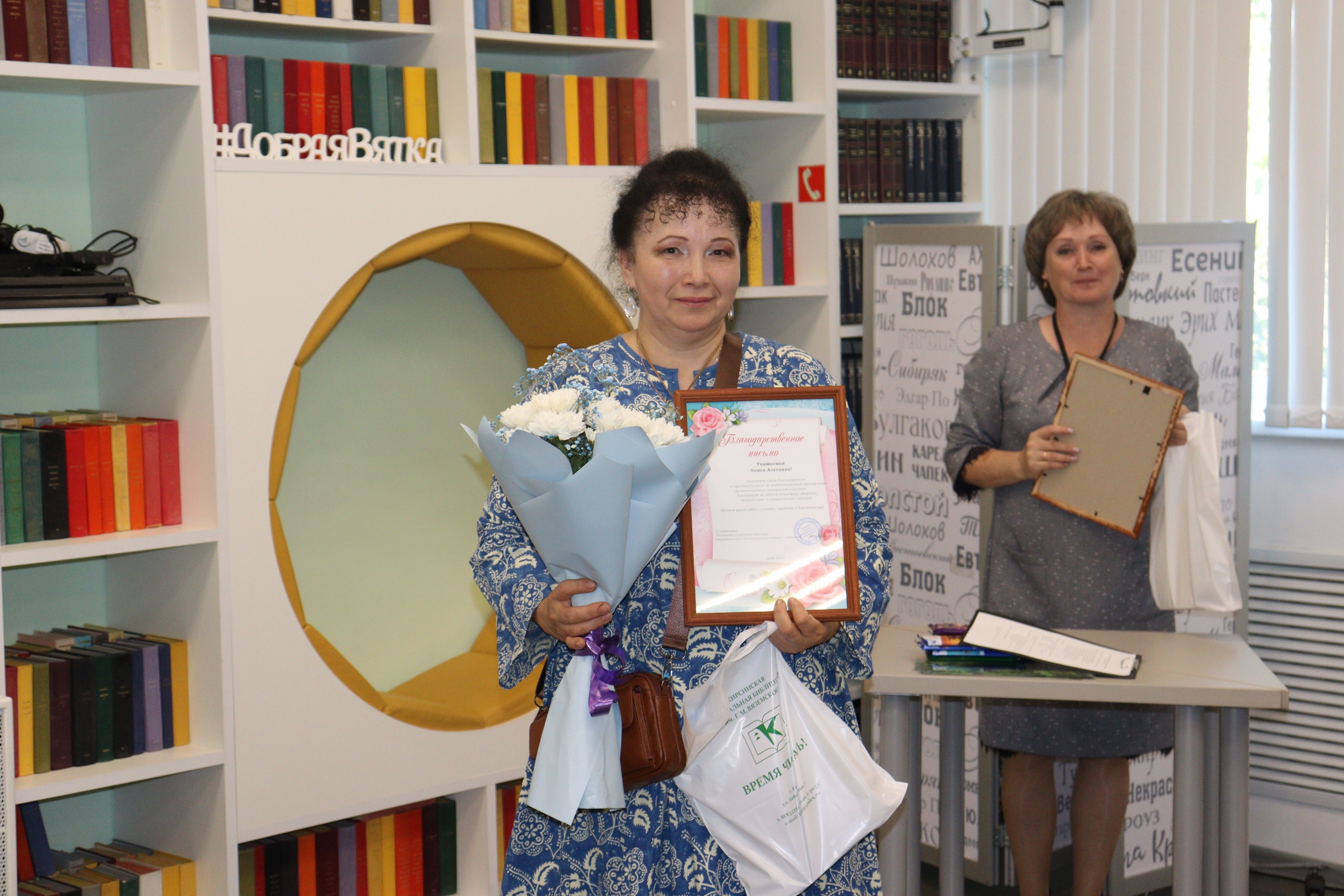 Второй день чтений стал настоящим праздником как для взрослого населения, так и для ребят. Прошли встречи с кировскими писателями В.С. Сизовым и А.Е. Романовой, необыкновенный мастер-класс по изготовлению Дворянской игрушки А.А. Сизовой.